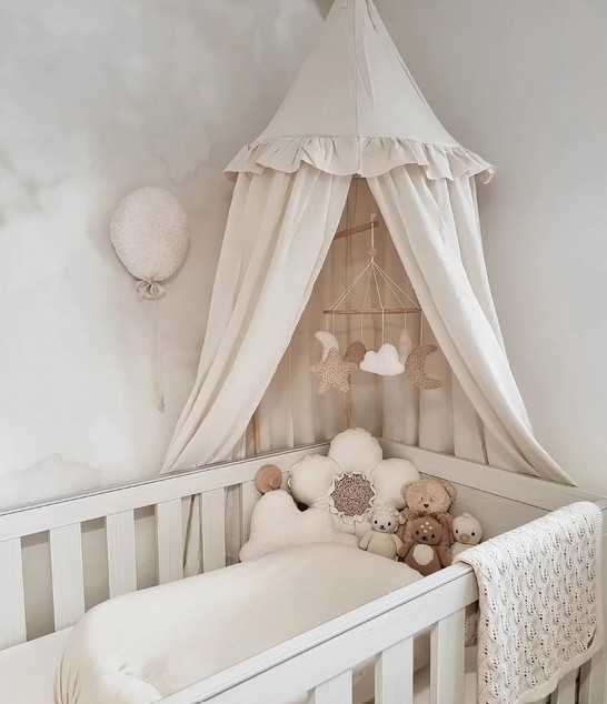 Wonder Space Kinderbetthimmel mit Rüschen, Pastell Neutrale Farbe für Jungen & Mädchen, Hängender Vorhang Moskitonetz für Kinderzimmer Babybett Kleinkinderbett Leseecke Dekoration