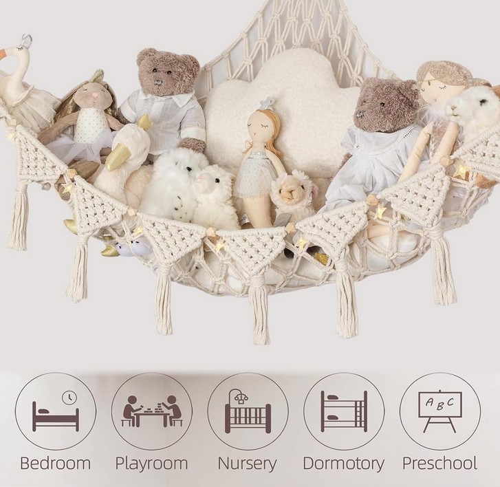 Kuscheltier Aufbewahrung Netz Boho Makramee Stofftier Hängematte Hängend Spielzeug Organizer für Kinderzimmer Schlafzimmer