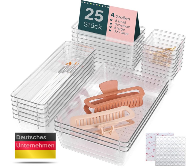 uandu Schubladen Organizer, 25er Set, Schreibtisch Organizer, Küchen Organizer, Organizer Schubade, Schminktisch Organizer, Make up Organizer, Schubladentrenner, Badezimmer Organizer, Organizer Küche
