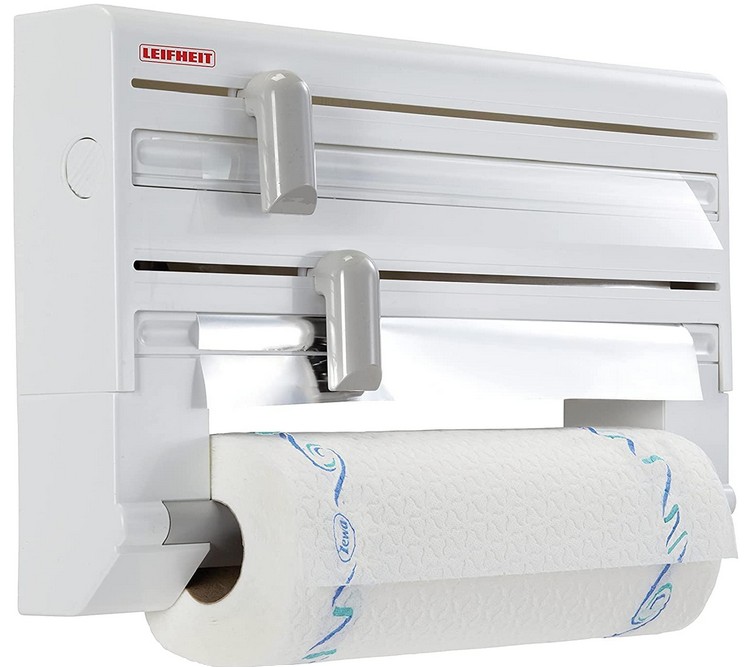 • Drei Rollen – Der Leifheit Wandrollenhalter kombiniert Papierrollenhalter und Folienspender: Alufolie, Klarsichtfolie und Küchenrolle können praktisch abgerollt werden